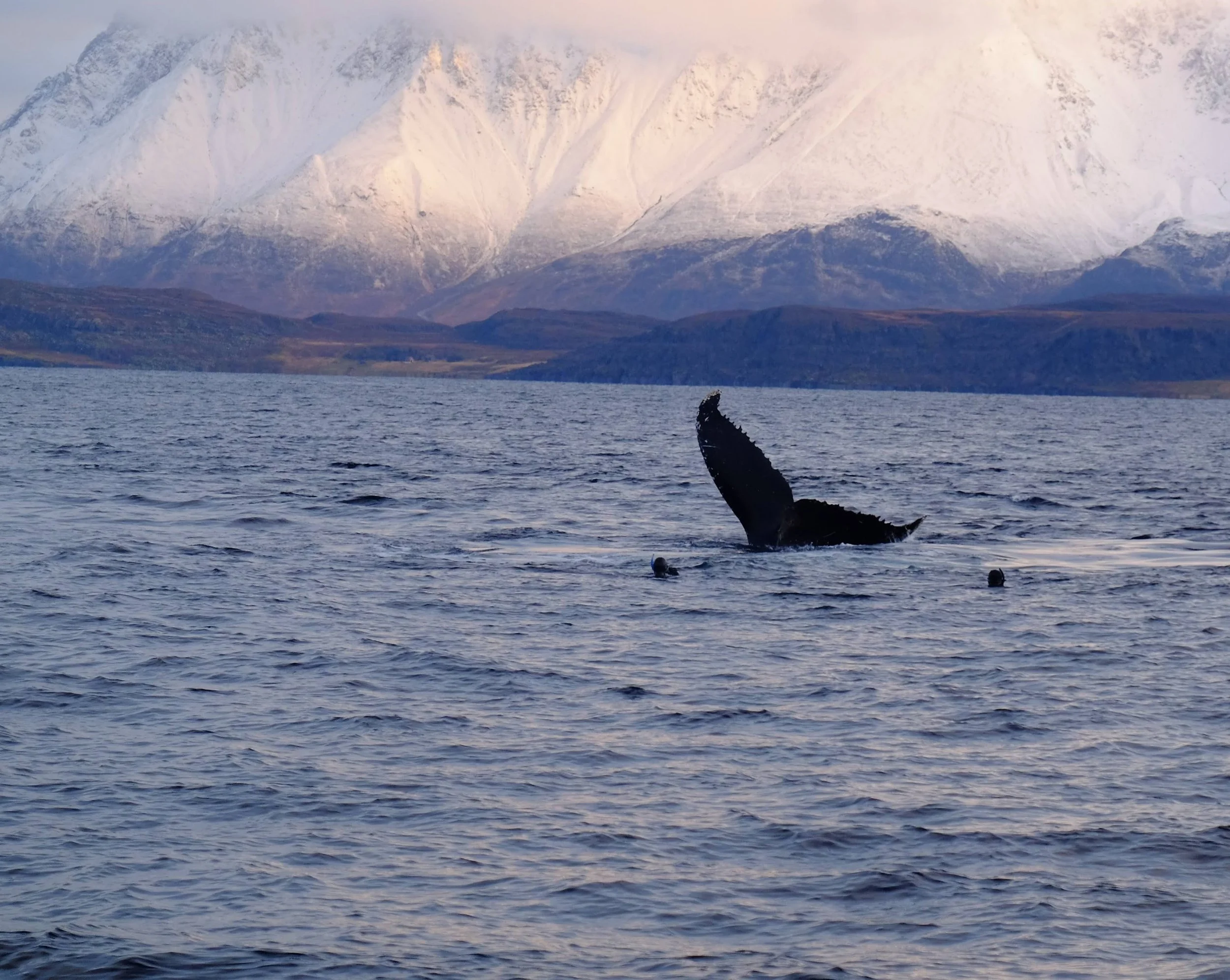 Join us for an unforgettable 5‑day sailing expedition from Skjervøy into the wild Arctic seas. From mid‑October to February, giant marine life gathers in these nutrient‑rich waters: watch humpback whales breach, orcas hunt in coordinated pods, and fin whales glide past in dramatic silhouette. By night, the dark Arctic skies offer frequent displays of the northern lights — nature’s perfect encore.